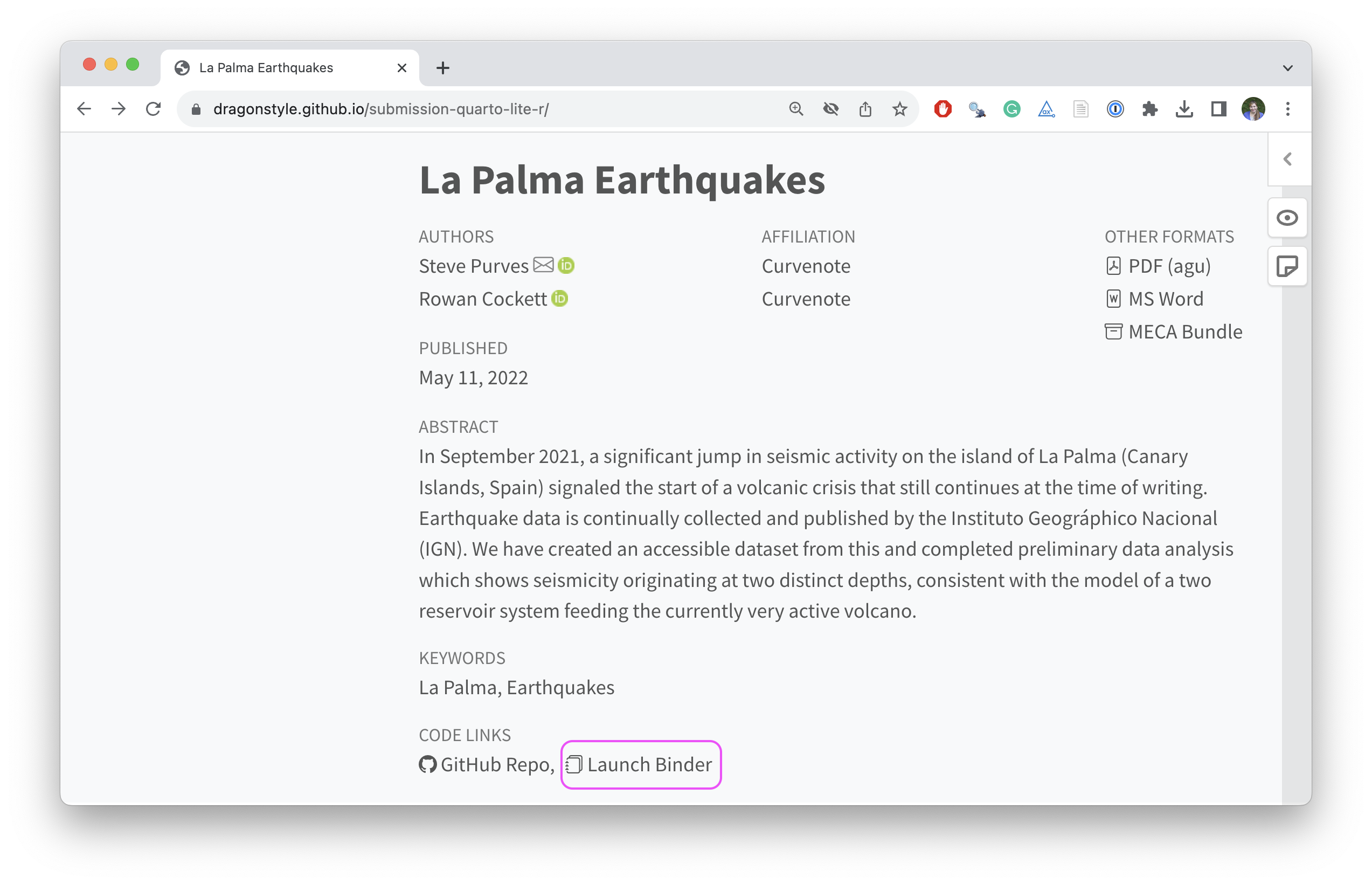 • What if you wanted to interact with the code – in a computational environment that’s just a click away and that has all the software and packages needed to reproduce the manuscript?
